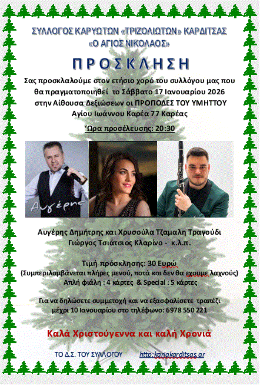 ΣΥΛΛΟΓΟΣ ΑΠΑΝΤΑΧΟΥ ΚΑΡΥΩΤΩΝ (ΤΡΙΖΟΛΙΩΤΩΝ) ΚΑΡΔΙΤΣΑΣ “Ο ΑΓΙΟΣ ΝΙΚΟΛΑΟΣ”